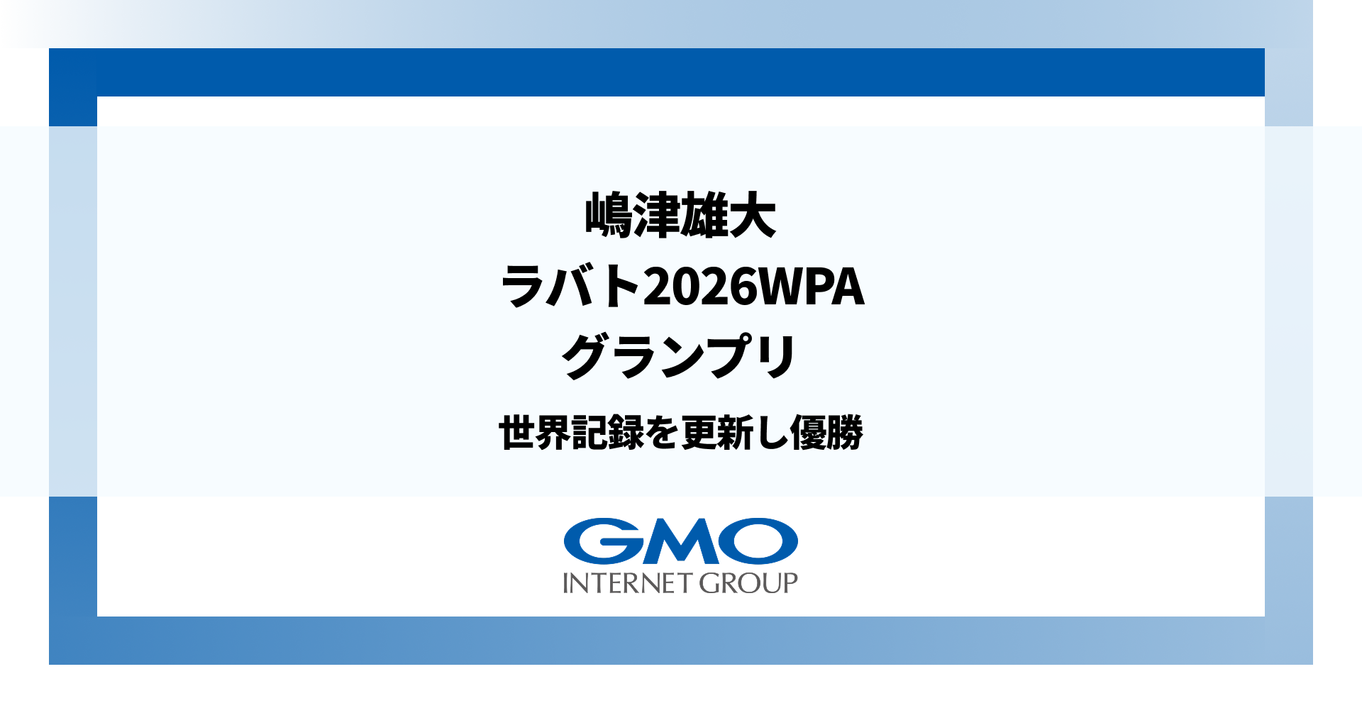 GMOインターネットグループ(陸上部)に所属する嶋津 雄大選手が、モロッコのラバトで現地時間4月24日に開催されたパラ陸上の国際大会「ラバト2026WPAグランプリ」 の、パラ陸上視覚障害クラスT13 男子5000mに日本代表として出場し、世界新記録14分3秒45で優勝したことをお知らせいたします。