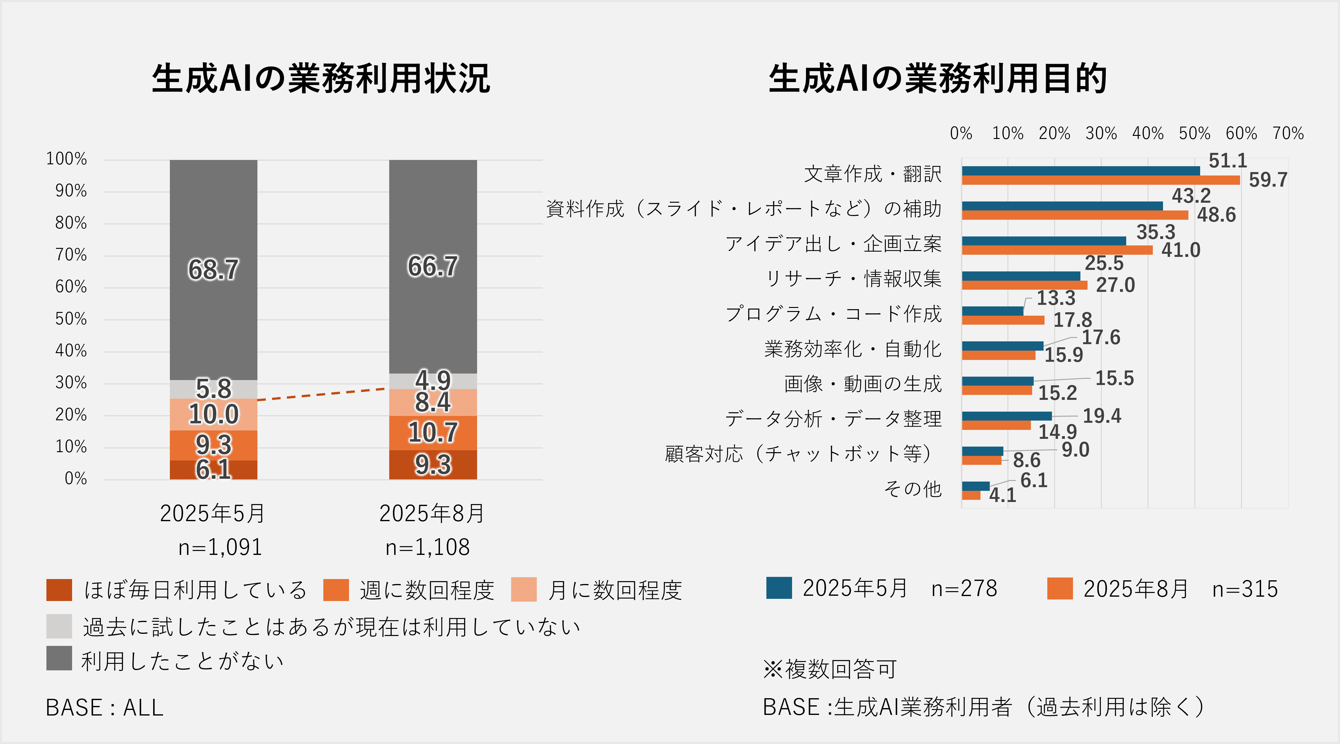 ■生成AIの業務利用状況と利用目的(2025年5月~2025年8月)