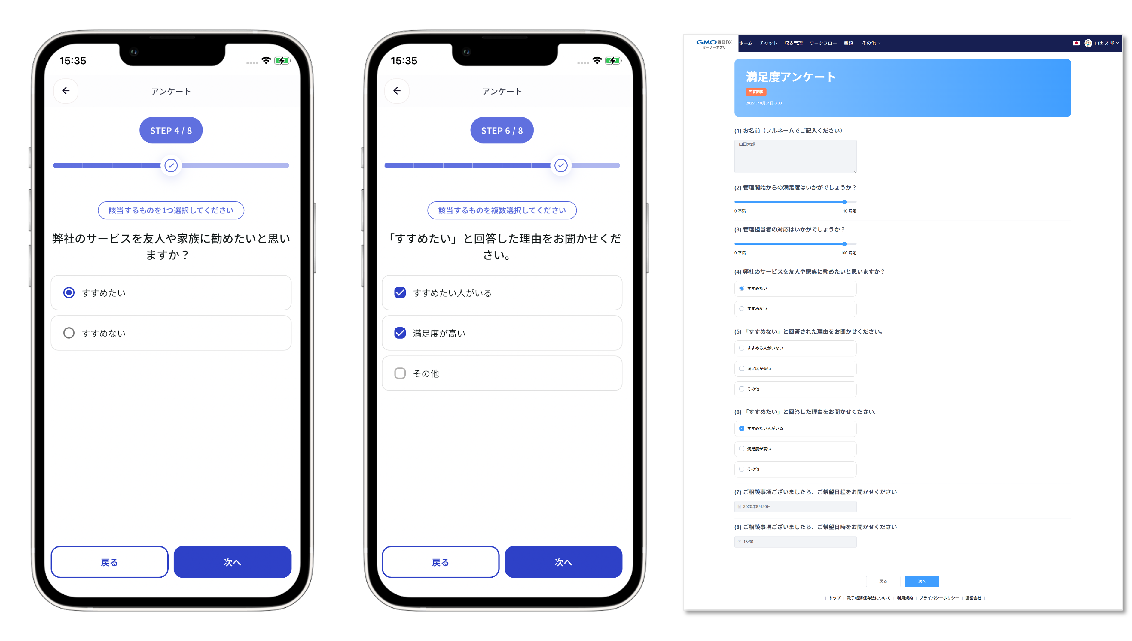 このような課題を背景に、GMO ReTechは、不動産管理会社がオーナーの声を手軽に収集・分析し、業務改善や関係構築に活用できる『オーナーアンケート機能』を開発しました。