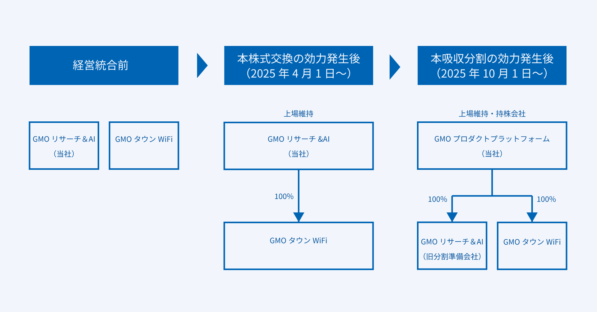 GMOインターネットグループのGMOプロダクトプラットフォーム株式会社(代表取締役社長:荻田 剛大、東証グロース:3695、旧商号:GMOリサーチ&AI株式会社、以下、当社)は、GMOタウンWiFi株式会社(以下、GMOタウンWiFi)との経営統合プロセス(※1)を完了し、本日2025年10月1日付で持株会社体制へ移行いたしました。