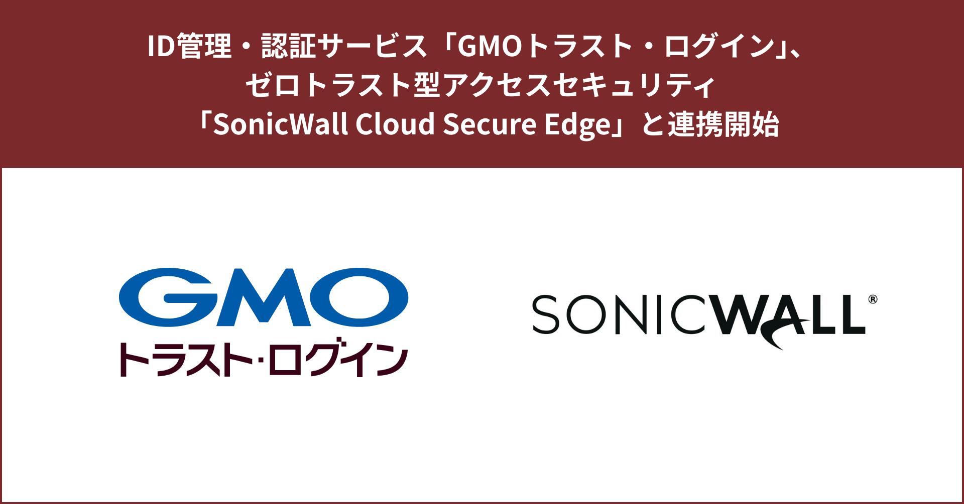 GMOインターネットグループのGMOグローバルサイン・ホールディングス株式会社の連結企業群で、電子認証サービスを展開するGMOグローバルサイン株式会社(代表取締役社長:中條 一郎 以下、GMOグローバルサイン)が提供するID管理・認証サービス「GMOトラスト・ログイン」は、ソニックウォール・ジャパン株式会社(代表取締役社長:北川 剛、以下「SonicWall」)が提供するゼロトラスト型アクセスセキュリティ「SonicWall Cloud Secure Edge」と、2025年10月8日(水)より、SAML認証による連携を開始しました。
