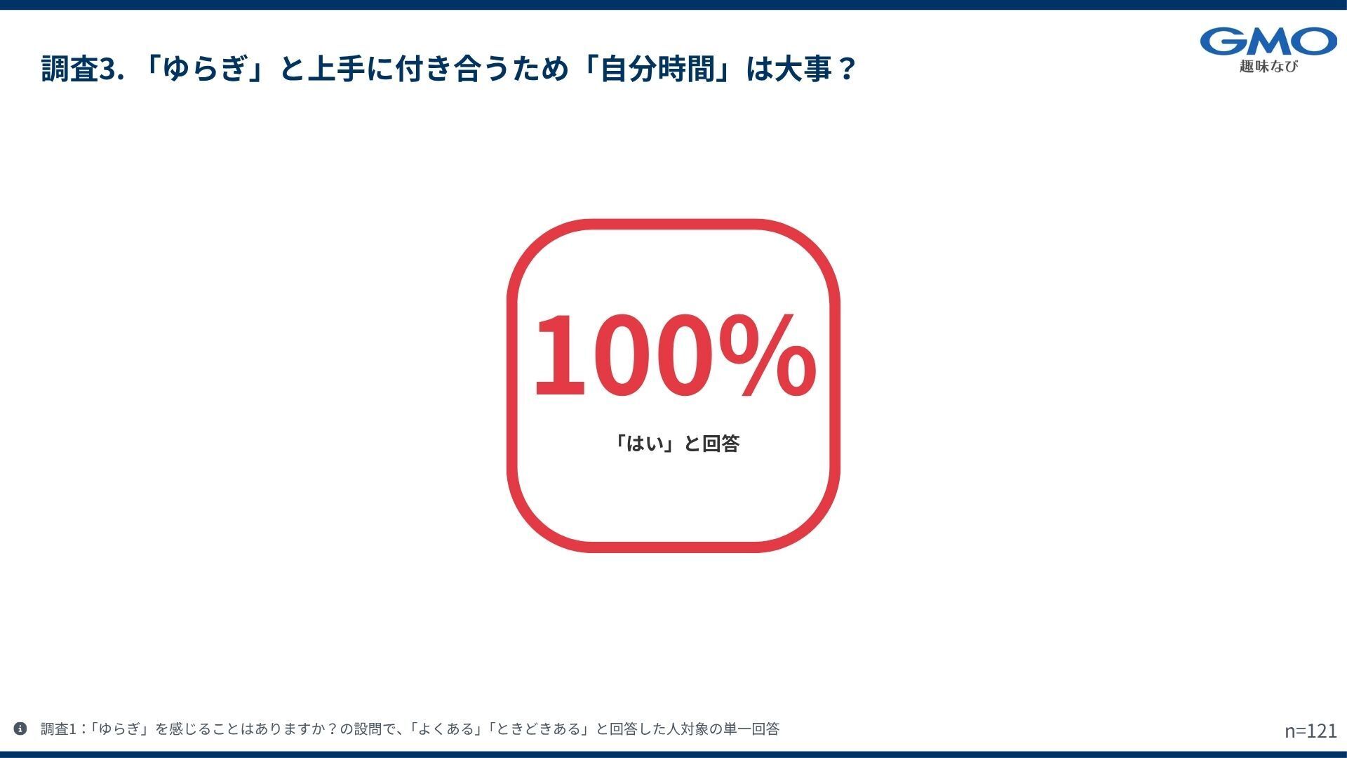 ゆらぎを感じる100%が「自分時間が大事」と回答