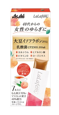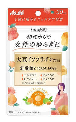 「ララフェム」は、年齢とともに変化するゆらぎ世代の女性が、毎日を楽しく、自分らしく輝けるように応援したいという思いから誕生した商品です。大豆イソフラボンとアサヒグループ独自素材の乳酸菌CP2305などを配合し、生活スタイルに合わせて選べる粒タイプとゼリータイプで展開します。