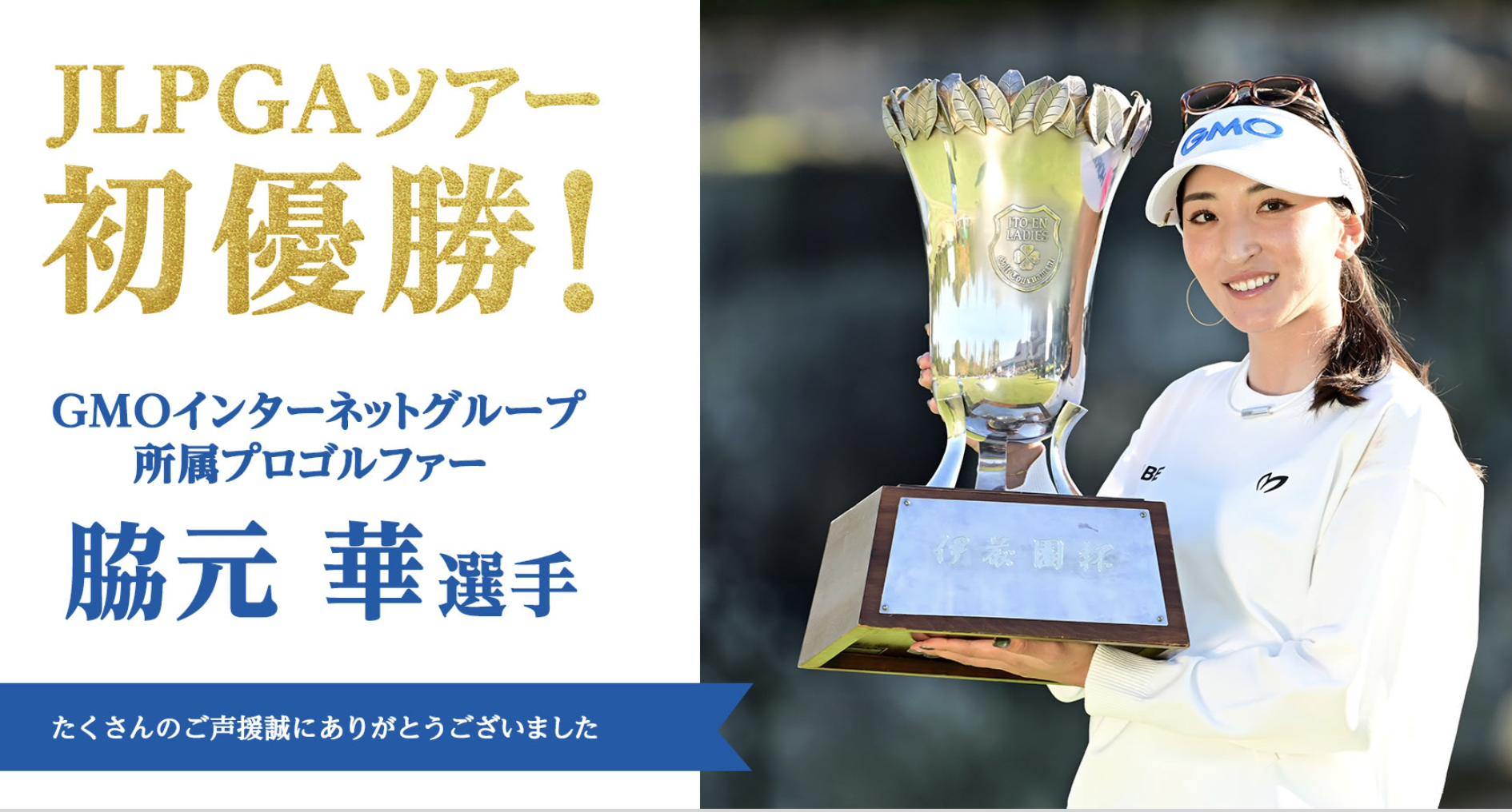 GMOインターネットグループ所属のプロゴルファー・脇元 華選手が、2025年11月14日〜16日にグレートアイランド倶楽部(千葉県)で開催されたJLPGAツアー「第41回 伊藤園レディスゴルフトーナメント」で、見事ツアー初優勝を飾りました。