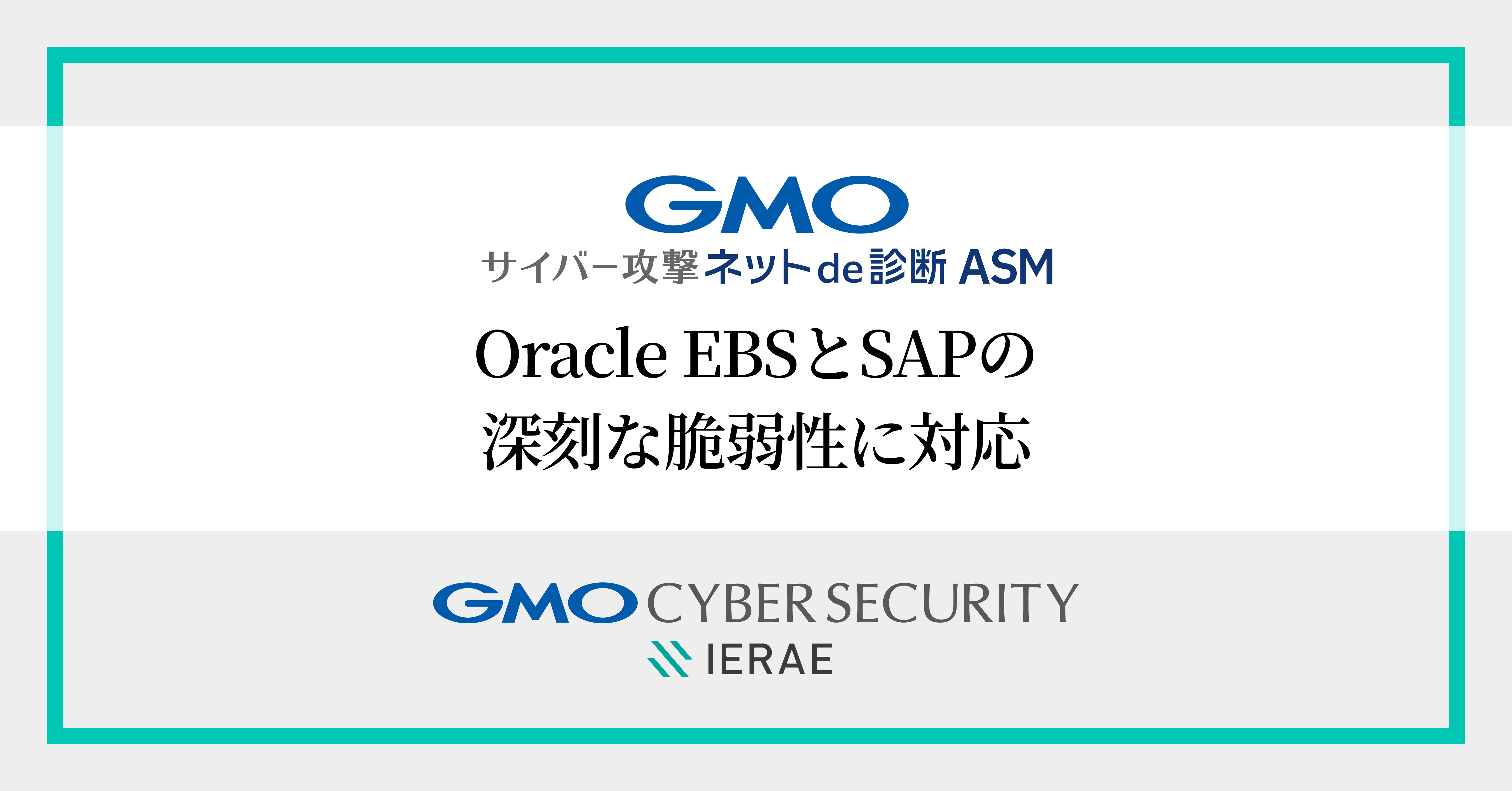 GMOサイバーセキュリティ byイエラエ株式会社(代表取締役CEO:牧田 誠 以下、GMOサイバーセキュリティ byイエラエ)は、2025年12月9日、外部公開IT資産を自動で棚卸し・可視化するアタックサーフェスマネジメント(※1)(Attack Surface Management、以下ASM)ツール「GMOサイバー攻撃 ネットde診断 ASM」をアップデートし、「Oracle E-Business Suite(Oracle EBS)」および「SAP NetWeaver」の利用と本脆弱性が悪用される可能性のある機能を検知した場合に、深刻な脆弱性が存在する可能性を通知する診断項目を追加しました。