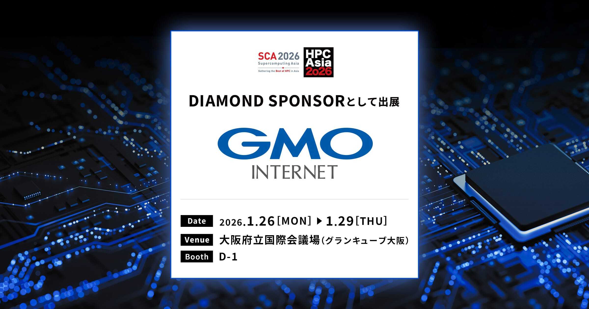 GMOインターネットグループのGMOインターネット株式会社(代表取締役 社長執行役員:伊藤 正 以下、GMOインターネット)は、2026年1月26日(月)~1月29日(木)(※1)に大阪府立国際会議場(グランキューブ大阪)で開催される、アジア最大級のハイパフォーマンスコンピューティング(HPC)に関する主要な国際会議イベント「SCA/HPCAsia 2026」にダイヤモンドスポンサーとして出展します。日本初の合同開催となる同会議では、「GMO GPUクラウド」の「NVIDIA HGX B300(以下、NVIDIA B300)」を搭載したサーバー筐体を展示、またNVIDIAをはじめとする先端企業と共に講演を行うなど、先進事例や技術力を発信します。