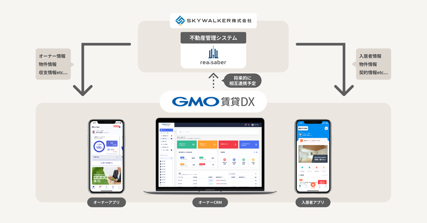 GMO ReTechはこれまで、「GMO賃貸DX」を通じて不動産管理会社の業務支援を行ってまいりました。このたび、さらなる利便性向上と業務効率化を目的に、SKYWALKERが開発・提供する「Realsaber」とのデータ連携を開始しました。