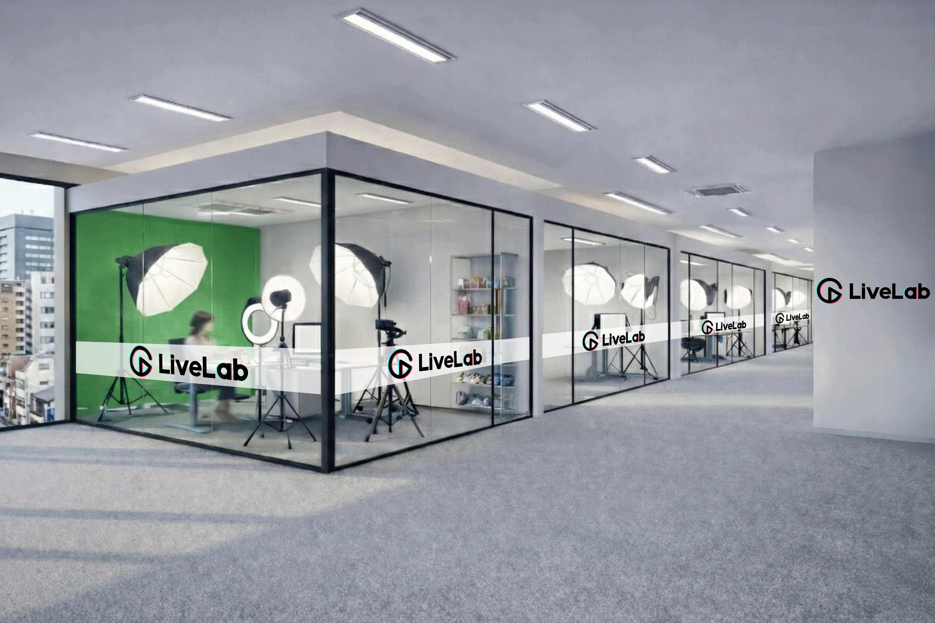 LiveLabが2026年2月中旬より開設を予定している日本最大規模(※5)のライブ配信スタジオにて、設備面・配信運営面の基盤を提供。複数ブースによる同時配信体制で、多様なクライアントニーズに対応します。