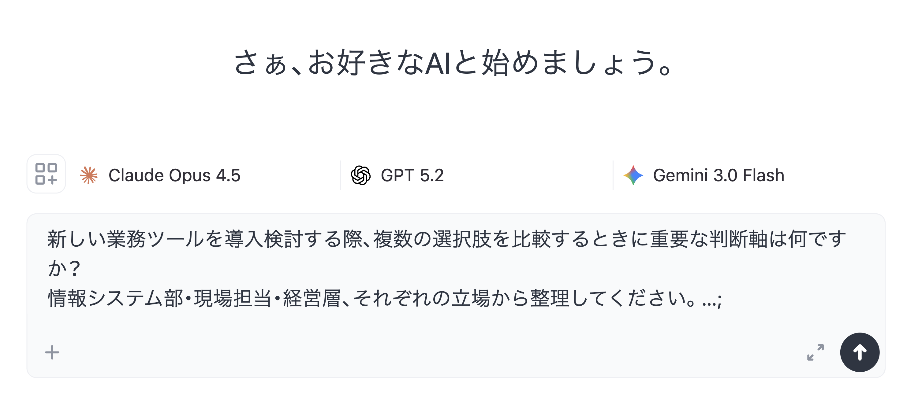 ・思考の抜け漏れ対策:全AIが見落としがちなポイントを指摘し、回答の質をさらに引き上げる支援。