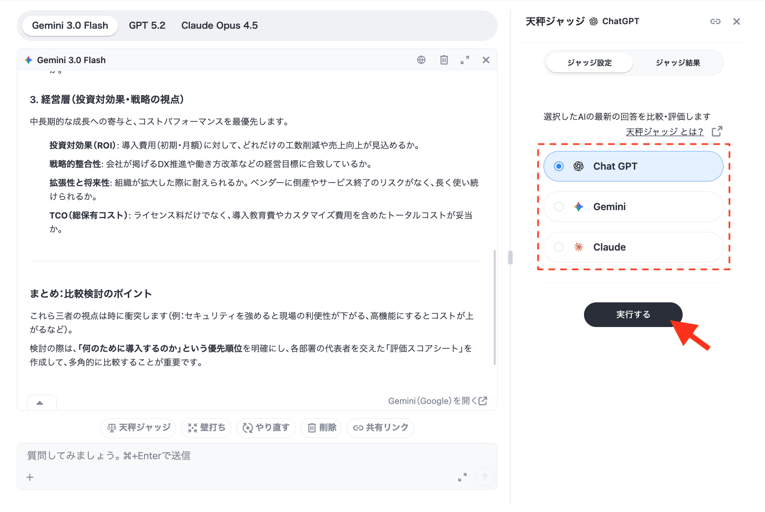 3. 複数AIの回答を「どのAIに評価させるか」を選択する