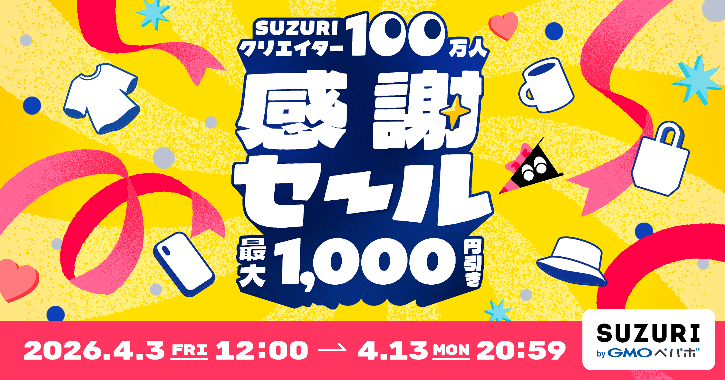 | セール名 | SUZURIクリエイター100万人感謝セール byGMOペパボ |