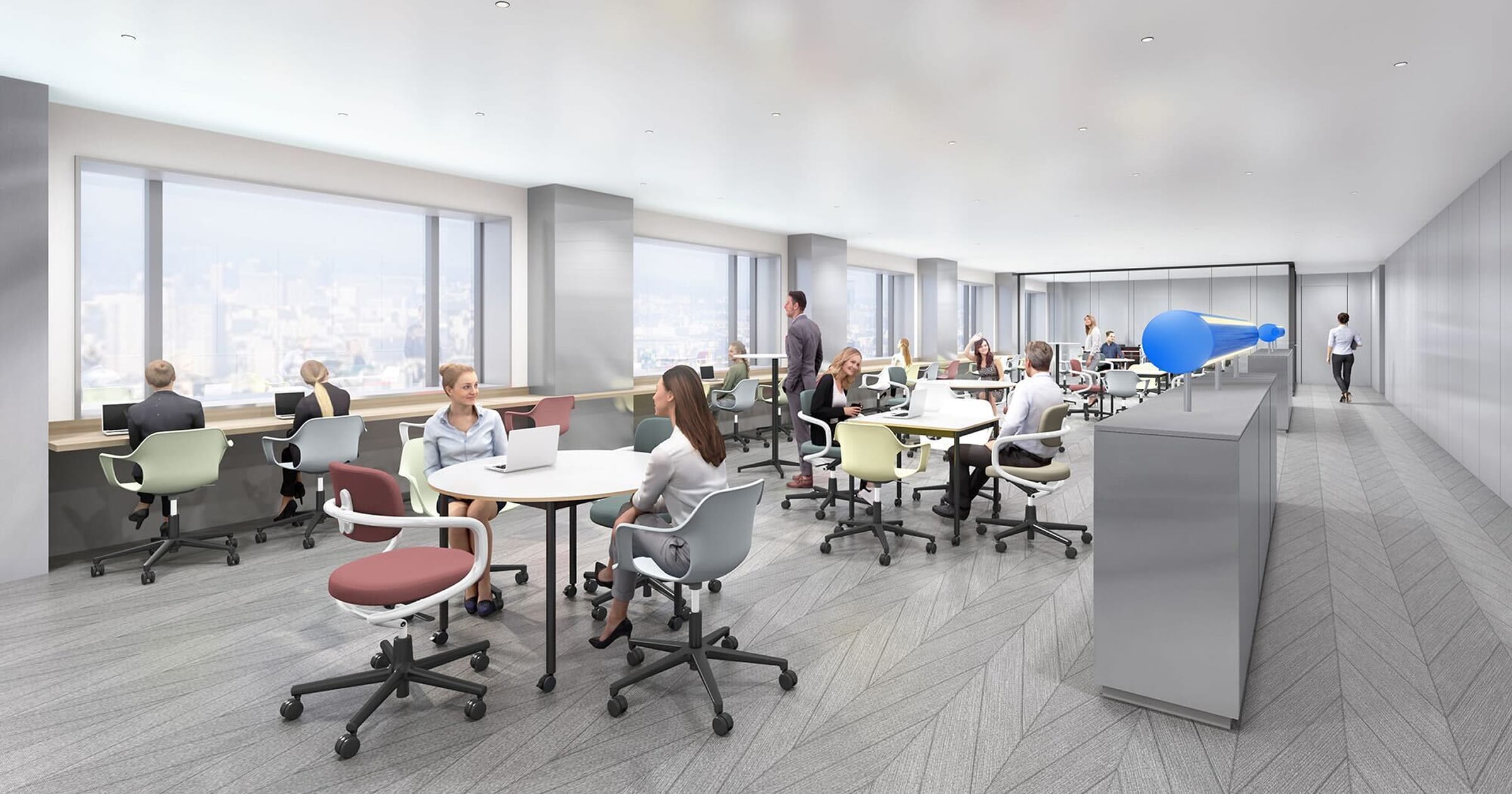 また、本拠点では、空間そのものにも徹底的にこだわりました。内装デザインは、GMOインターネットグループ第2本社・渋谷フクラスのコミュニケーションスペース「シナジーカフェ GMO Yours・フクラス」なども手がけた、GLAMOROUS co.,ltd.代表の森田恭通氏が担当。機能性と美しさを高い次元で両立し、世界水準の研究開発にふさわしい創造空間を実現しています。