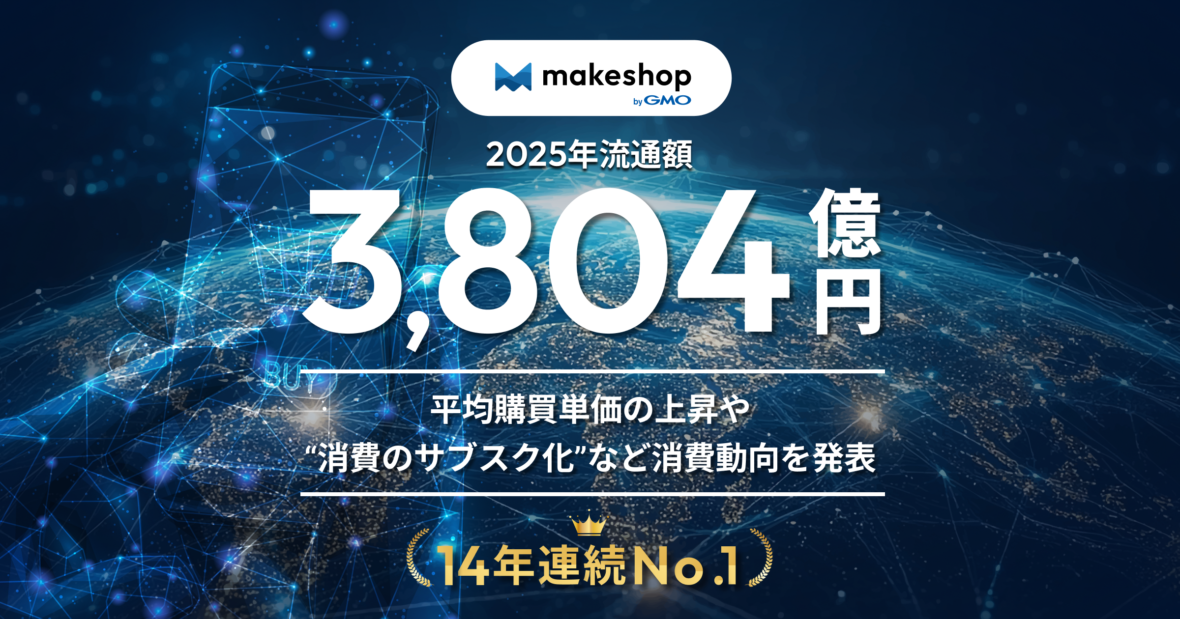 GMOインターネットグループのGMOメイクショップ株式会社(代表取締役社長CEO:向畑 憲良、以下、GMOメイクショップ)が提供するEC構築SaaS「makeshop byGMO」(URL:https://www.makeshop.jp/)は、2025年の年間流通額が3,804億円(前年比110.9%)となり、過去最高を更新。国内のEC構築SaaS業界において14年連続で年間流通額No.1(※1)を達成しました。