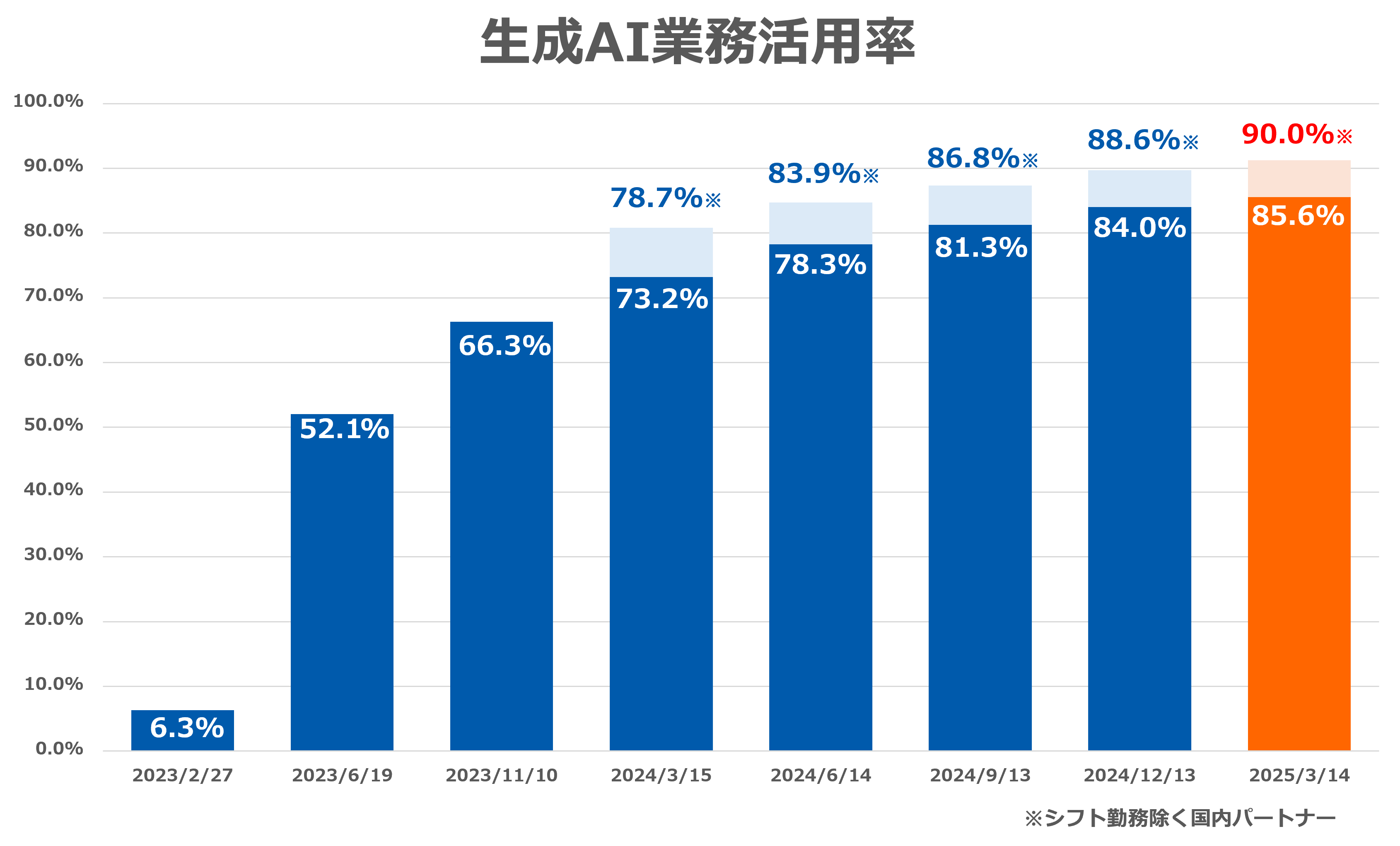 ・国内パートナー(シフト勤務除く)の90.0%が生成AIを活用(前回調査差+1.4ポイント)。