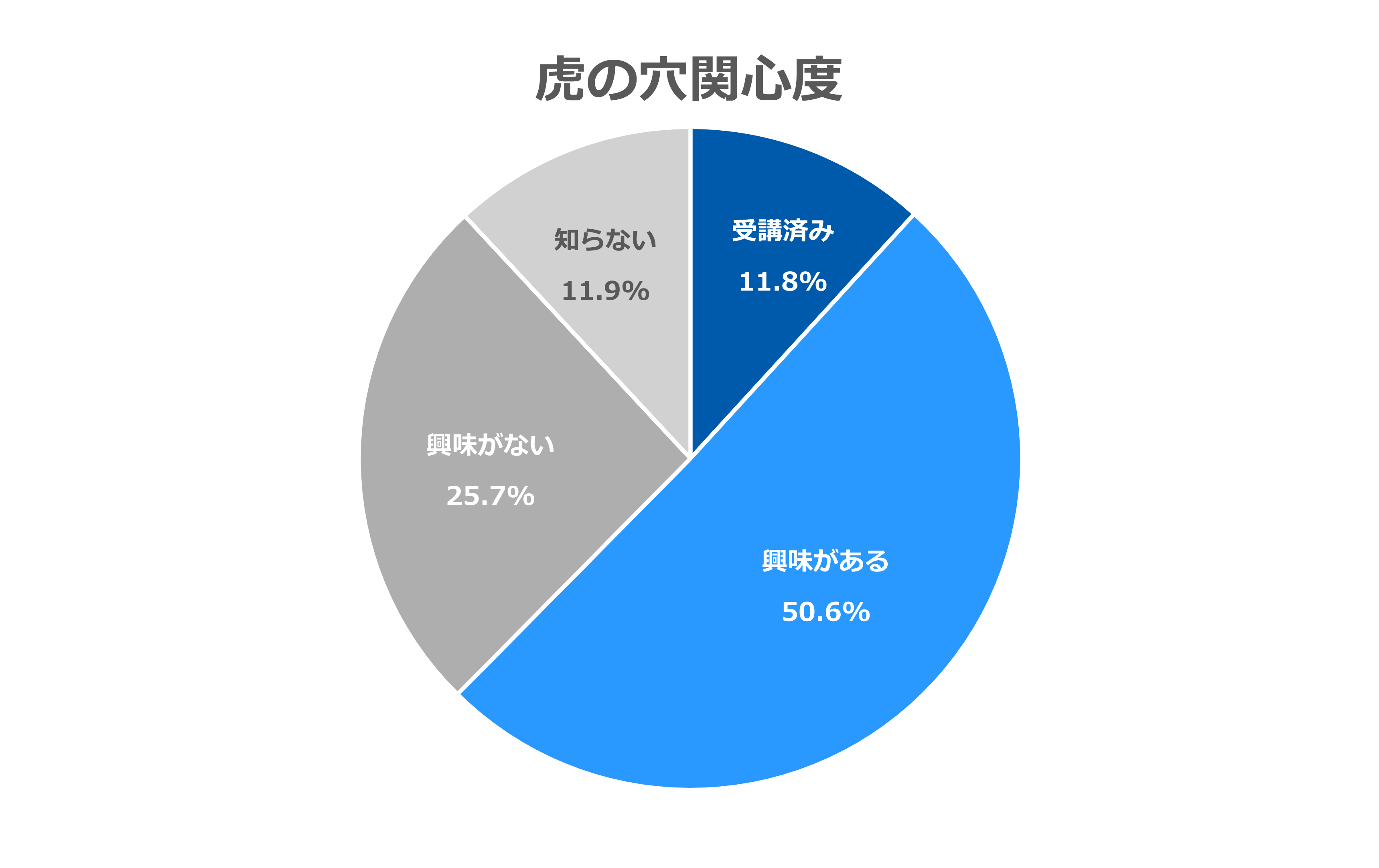 ・2024年2月より開始した、GMOインターネットグループオリジナルのリスキリング施策である、短期AI人材育成プログラム「虎の穴」について、「受講済み」が11.8%、「興味がある」が50.6%という結果となりました。
